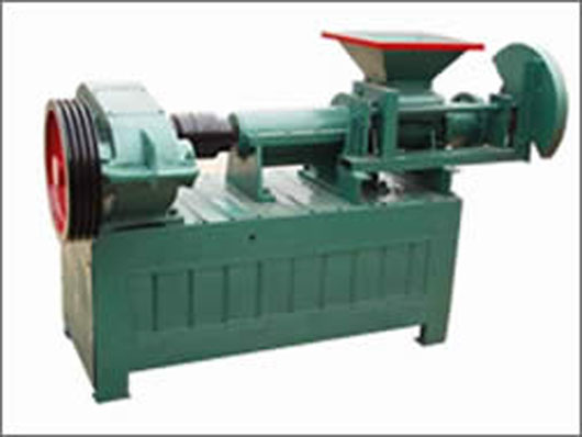 煤棒機是將粉末狀原料制成不同形狀條形塊的機具。其工作原理是:電動機經三角帶把動力傳給變速器,變速器輸出軸通過浮動聯軸器把動力傳給推進軸,推進軸上的推進其推動煤料經成型模頭推出,便產生出理想的高壓煤棒。
